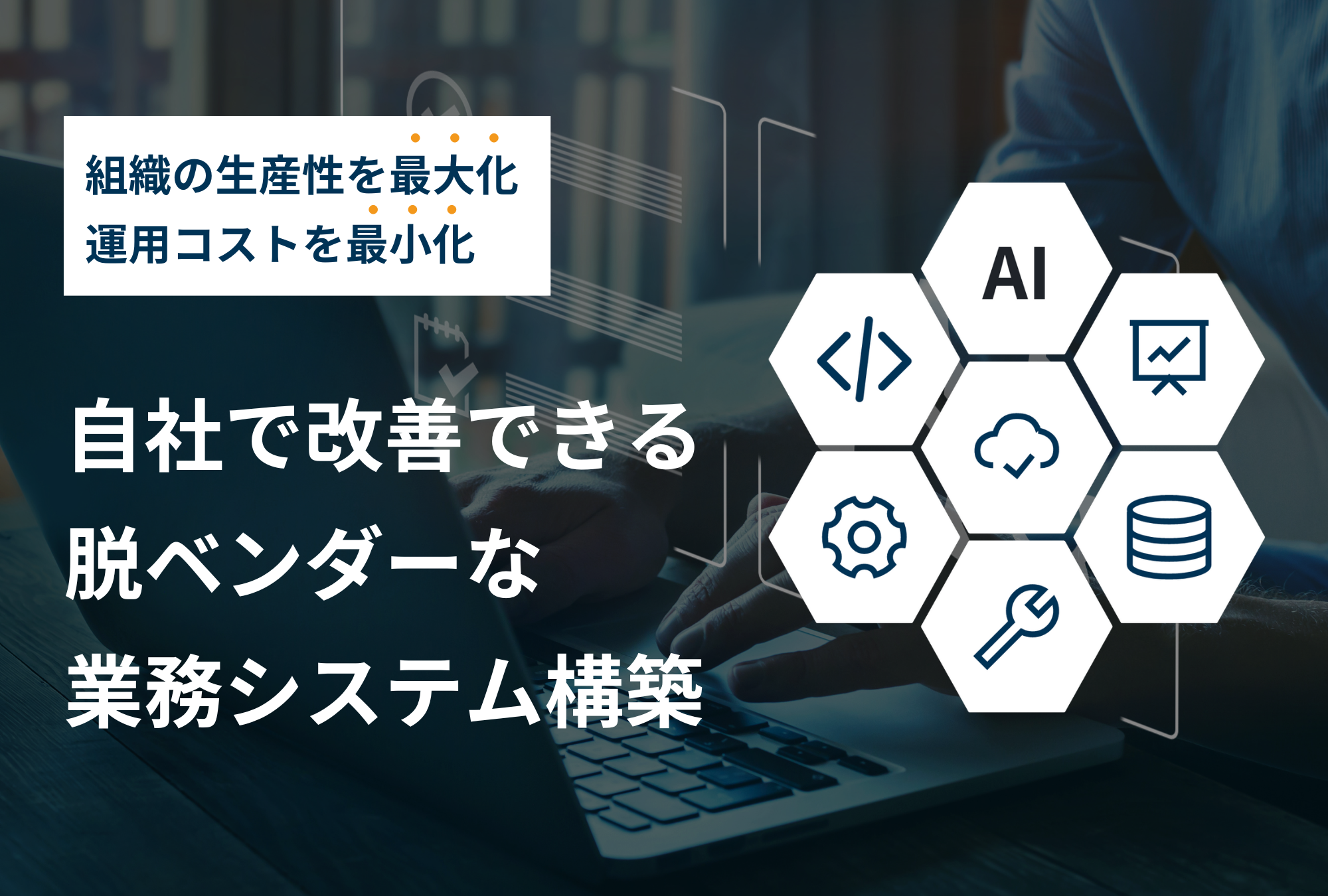 現場・管理者が確認・改善できる脱ベンダーな業務システムをデザイン、構築、運用定着まで伴走します。