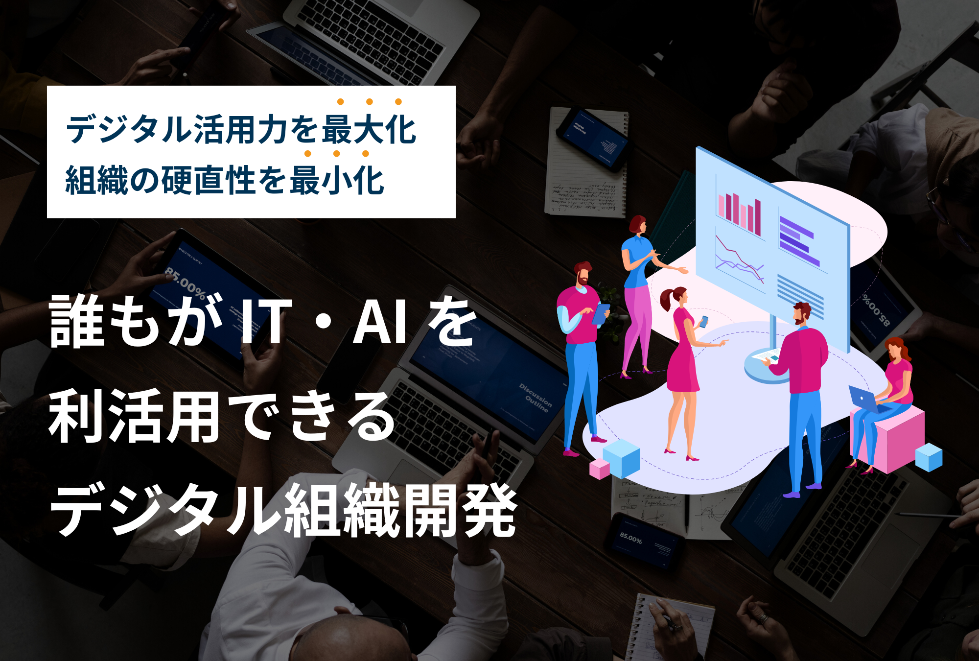 デジタル領域の研修実績に基づき、IT・AI を利活用し、自走してデジタル業務改善できる組織開発(内製化)を伴走します。